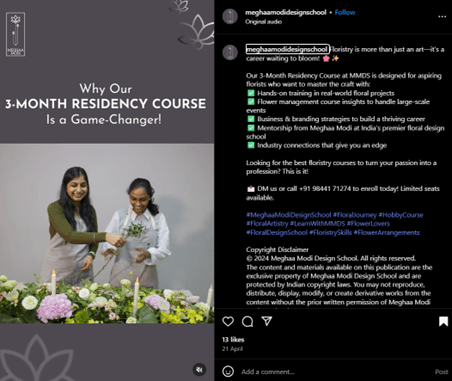 "Our new marketing approach not only attracted more aspiring florists but also helped us connect with students genuinely interested in building a creative career,” Meghaa Modi, Founder, Meghaa Modi Design School.